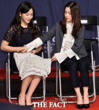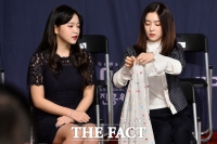 28日上午,Red Velvet出席在首尔中区CKL企业志愿中心举行的2017上半年K-POP海外showcase记者见面会。队长Irene为忙内Yeri露出的膝盖盖上毛毯。