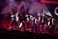 从开场就很华丽。INFINITE以2015年发行的迷你5辑《Reality》主打曲<Bad>拉开见面会帷幕,以INFINITE的代表刀群舞和粉丝们充满力量的应援法开始。尤其是在Hoya的独舞中爆发出了欢呼声。