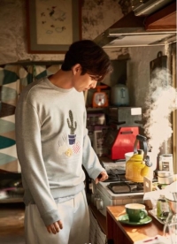 两张照片分别是要进入济州岛家中的模样和正在煮咖啡的模样。孔刘随意的时尚和温柔的眼神散发着春天的味道。