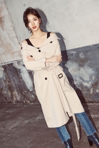 画报中秀智除了大衣造型,衬衫造型之外还有全蓝的丹宁造型,牛仔套装加上露脐小背心等大热单品也被秀智完美地消化了。