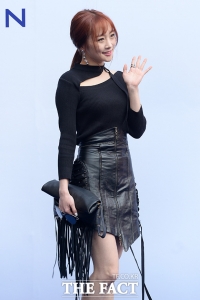 歌手Nicole和秀彬,少女时代徐贤,T-ARA孝敏(从左到右)28号下午出席了在首尔中区东大门DESIGN PLAZA举行的‘2017 F/W 首尔时装周’。