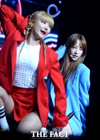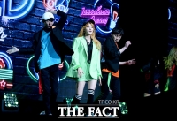 EXID成员LE,惠潾,HANI,正花(从左到右)10号下午在首尔龙山区汉南洞BLUE SQURE举行了第三张迷你专辑‘Eclipse’的SHOWCASE。