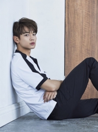 某时尚品牌提议通过每年都会聚集人气的多种设计的衬衫和时尚的T恤衫等令谁都能感受到摩登和清凉感十足的夏日风格来进行与珉豪合作进行的夏日画报的拍摄。