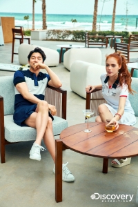 孔刘和Discovery一起拍摄了这次画报是在椰子树和白色沙子为背景的异国风情国家迪拜海边进行拍摄的。