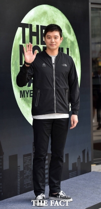 演员千正明于28日下午出席在首尔中区明洞举行的The North Face旗舰店开业纪念活动。