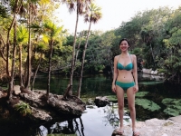 在公开的照片中,雪莉穿着比基尼展示了纤瘦的身材。纤细的腰部展示着优越的身材比例受人瞩目。
