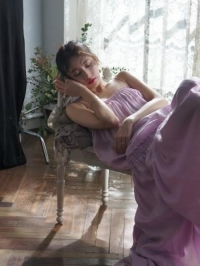 她躺在椅子上摆出优雅的姿势时,温暖的阳光中美丽的侧脸散发着迷人的魅力。