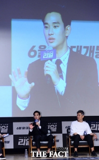演员金秀贤于31日下午出席在首尔钟路区成均馆大学新千年礼堂举行的电影《Real》showcase。这部电影是金秀贤时隔4年的回归之作,也是生平第一次挑战一人分饰两角的作品。
