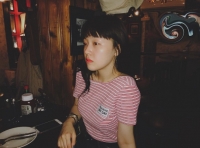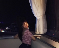 在照片中,以夜景为背影在摆着姿势的敏雅的模样。敏雅可爱的刘海很吸引人注意。渐渐变的年轻的敏雅的模样。