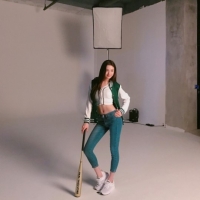 公开的照片中NANA变身为BAD GIRL。身穿尽显身材的牛仔裤和露脐T恤拿着棒球棒的NANA就像是运动女神一般。
