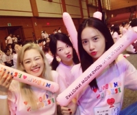 身着粉红色T恤朝着镜头摆出可爱姿势的三人,或嘟起嘴吧,或灿烂地笑着的允儿和泰妍,孝渊的撒娇吸引了人们的视线。