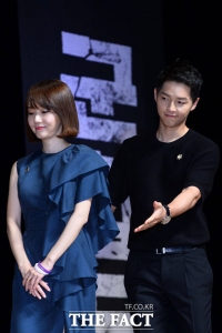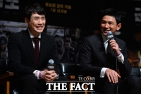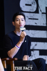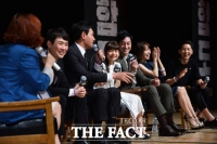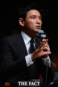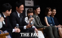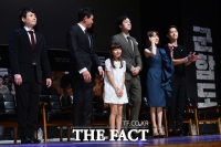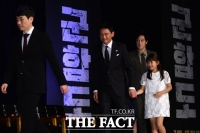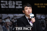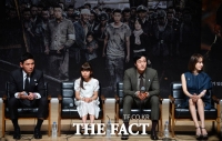 柳承莞导演和演员黄政民,苏志燮,李贞贤,宋仲基于15日上午出席在首尔龙山区国立中央博物馆举行的电影《军舰岛》的制作发布会。