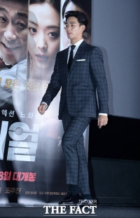 演员金秀贤于26日下午出席在首尔城东区CGV往十里店举行的电影《Real》媒体试映会。