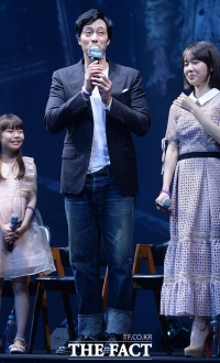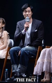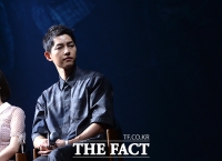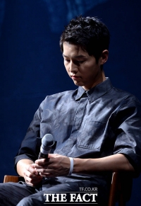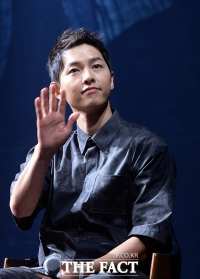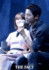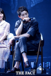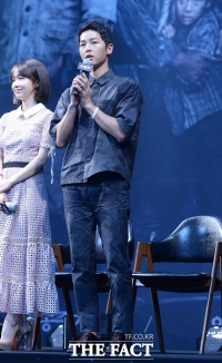 演员苏志燮和宋仲基于26日下午出席在首尔中区体育馆举行的电影《军舰岛》SHOWCASE。