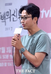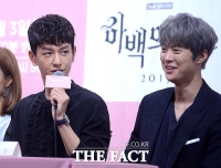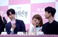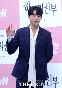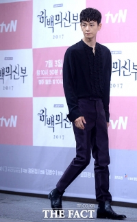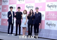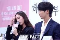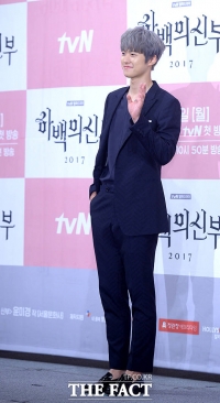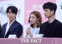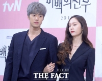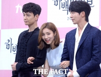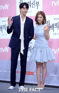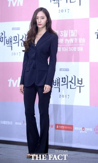 演员南柱赫和林周焕,申世京,Krystal,孔明于27日下午出席在首尔江南区论岘洞举行的tvN电视剧《河伯的新娘2017》制作发布会。