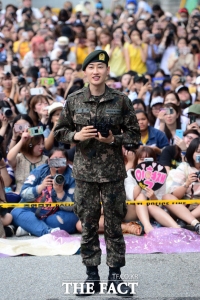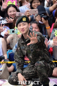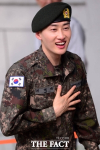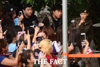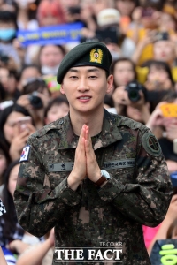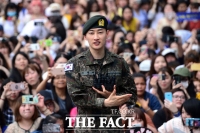 结束服兵役的组合Super Junior成员银赫于12日上午向来到江原道原州的第一