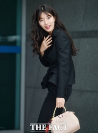 歌手兼演员秀智于18日下午因海外画报拍摄行程从仁川国际机场出境。