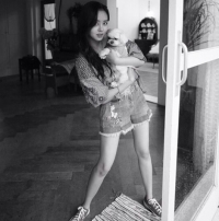 公开的照片中,金所炫抱着狗狗在怀中注视着镜头。特别是和狗狗一样的眼珠散发着美貌很吸引人们的视线。