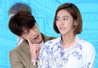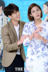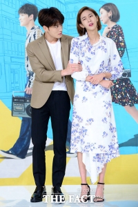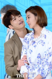演员金在中和U-IE于7日下午出席在是永登浦区Time Square举行的KBS2水木剧《Manhole-奉弼梦游仙境》制作发布会。