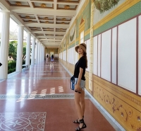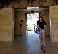 照片中是李多海戴着墨镜穿着牛仔短裤的模样。李多海小巧的脸蛋和无尽头的腿长很吸引人们的视线。
