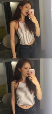 照片中的泫雅身穿牛仔裤搭配吊带衫来展示毫不累赘的时尚风格。泫雅的脸证明了‘时尚的完成靠脸’这一观点。用专属她的感觉完成了独一无二的氛围。泫雅的象征泪痣也增添了微妙的感觉。