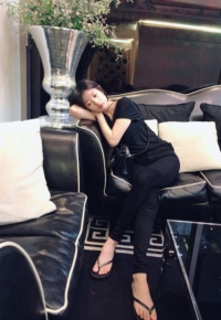 照片中郑素敏坐在沙发上陷入思考的模样。全黑的造型很吸引人们的视线。小巧的脸蛋和清纯魅力还是依旧。