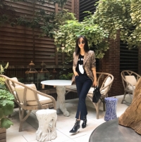 照片中是在纽约曼哈顿街头的俞利的模样。 俞利穿着开叉喇叭牛仔裤搭配格子花纹外套展示了帅气的造型。用墨镜完成的酷酷魅力让人印象深刻。
