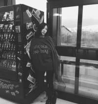 在另一张照片中泰妍靠着自动售货机摆着不高兴的表情引发了笑容。自由的日常很吸引人们的视线。