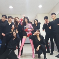 照片中宣美摆出对着粉丝们的心脏打枪的姿势,以及闭着眼睛散发了迷人美。‘GASHINA’一起活动的伴舞们拍下了清爽笑容的照片。