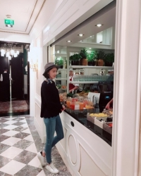 允儿在维也纳展示着清纯美貌。