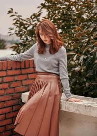 李宝英以秋季的必备单品针织衫和开衫展现了实用又高级的造型,在来往于室内和室外的拍摄中也展现出了专业的面貌。