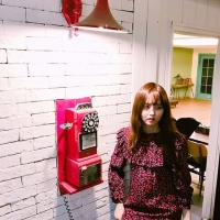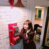 照片中金所炫在拍摄道具公共电话前摆着各种姿势。展示了小巧的脸蛋和精致的五官。