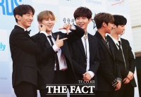 组合WANNA ONE出现在9月20日于首尔松坡区蚕室学生体育馆中举行的2017第一届SORIBADA BEST K MUSIC AWARDS红地毯上了.