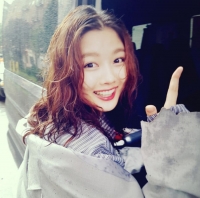 公开的照片中是金裕贞搭乘车前注视镜头摆着V手势的模样。头发湿湿的金裕贞很吸引人们的注意。