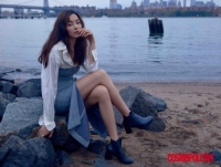 李哈妮在纽约时尚杂志《COSMOPOLITAN》的画报中的迷人魅力,展现了韩国小姐出身的面貌,完美消化了超大号大衣和切尔西靴子、格子裤子等今年秋天流行的单品。