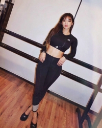 照片是金希庭穿着健身服装散发充满弹力的健康美。