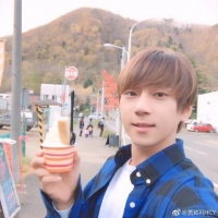 照片是黄致列拿着冰淇淋摆着姿势的模样。白皙肌肤和高挑的鼻梁展示了帅气的外貌很吸引粉丝们的视线。