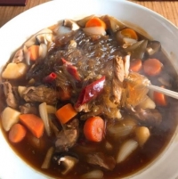 公开的照片中的裴勇俊制作的炖鸡。