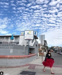 公开的照片中TIFFANY在美国加利福尼亚的海边在湛蓝的天空下展示了自己可爱的面貌。看她穿着华丽又性感的服装可以推测出是在进行专门的拍摄。