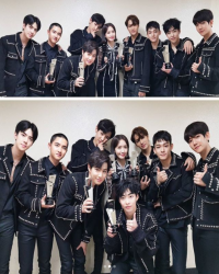 照片是15日2017 AAA(AsiaArtistAwards)颁奖典礼现场的允儿,EXO,super junior的模样。