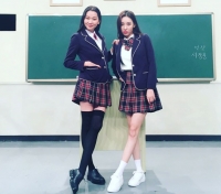 照片中张允珠和宣美穿着录制“认识的哥哥”的校服在摆着姿势的模样。两人优越的校服姿态吸引着人们的视线。