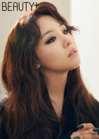 装饰《BEAUTY+》12月刊封面的敏雅以黑色烟熏妆展示了和平时活泼开朗的形象不同的成熟高冷魅力。