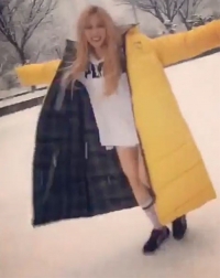 泫雅于6日下午在自己的ins上传了一则短视频.视频中泫雅一边喊着“来抓我”一边在雪地中跑着。黄色的长款羽绒服展现了可爱活泼的魅力。