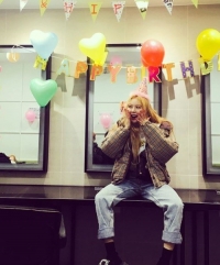 泫雅8日在自己的INSTAGRAM上传了两张照片并留言“谢谢.今天KBS 2TV‘音乐银行’初舞台.快点见面吧”。