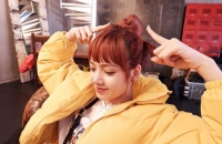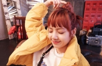 照片中Lisa穿着使人联想到小鸡的黄色外套摆着花朵姿势,指着绑起来的头发散发着撒娇。展示了和平时高冷的girl crush不同的模样。