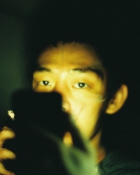 照片中刘亚仁在黑暗中散发了强烈的眼神以正面注视着镜头。