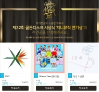 第32届金唱片颁奖典礼正在进行'genie音乐人气奖'的在线投票中,EXO位居榜首。