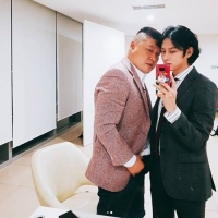 公开的照片中是金希澈在看起来是待机室的地方对着镜子拍下的。金希澈身着西装跟姜虎东一起摆出了帅气的姿势。