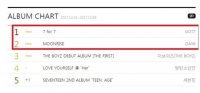 GOT7和DAY6分别占据了GAON排行榜第49周一二位。