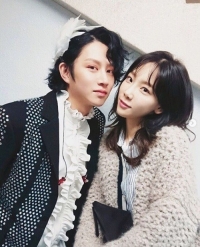 公开的照片中是在当天举行SUPER JUNIOR演唱会‘SUPER SHOW7’的后台拍照的金希澈和泰妍。